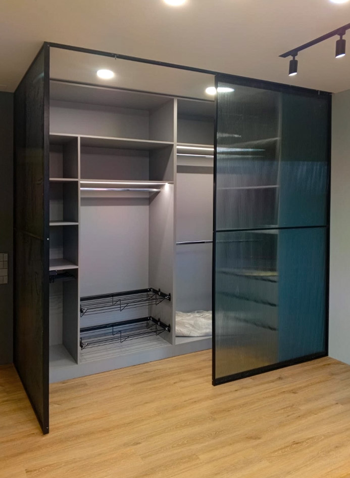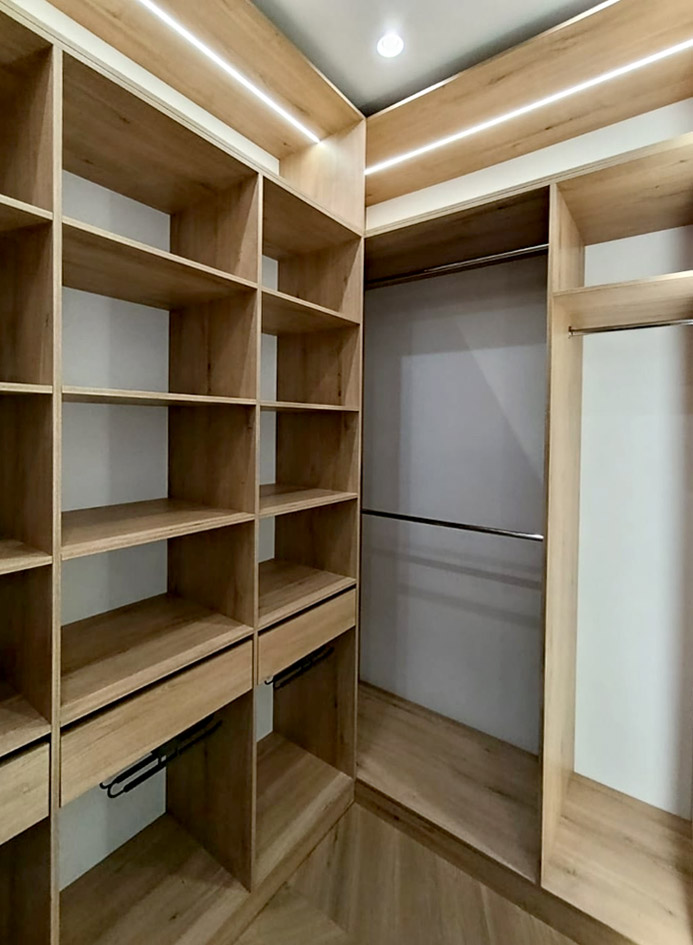 Мы специализируемся на проектировании индивидуальной гардеробной. Мы создаем уникальные и безопасные решения, вмещающие все ваши вещи. Наши гардеробные помогают скрыть технические узлы квартиры, такие как щиток и прочее, обеспечивая функциональность и эстетическое удовлетворение.